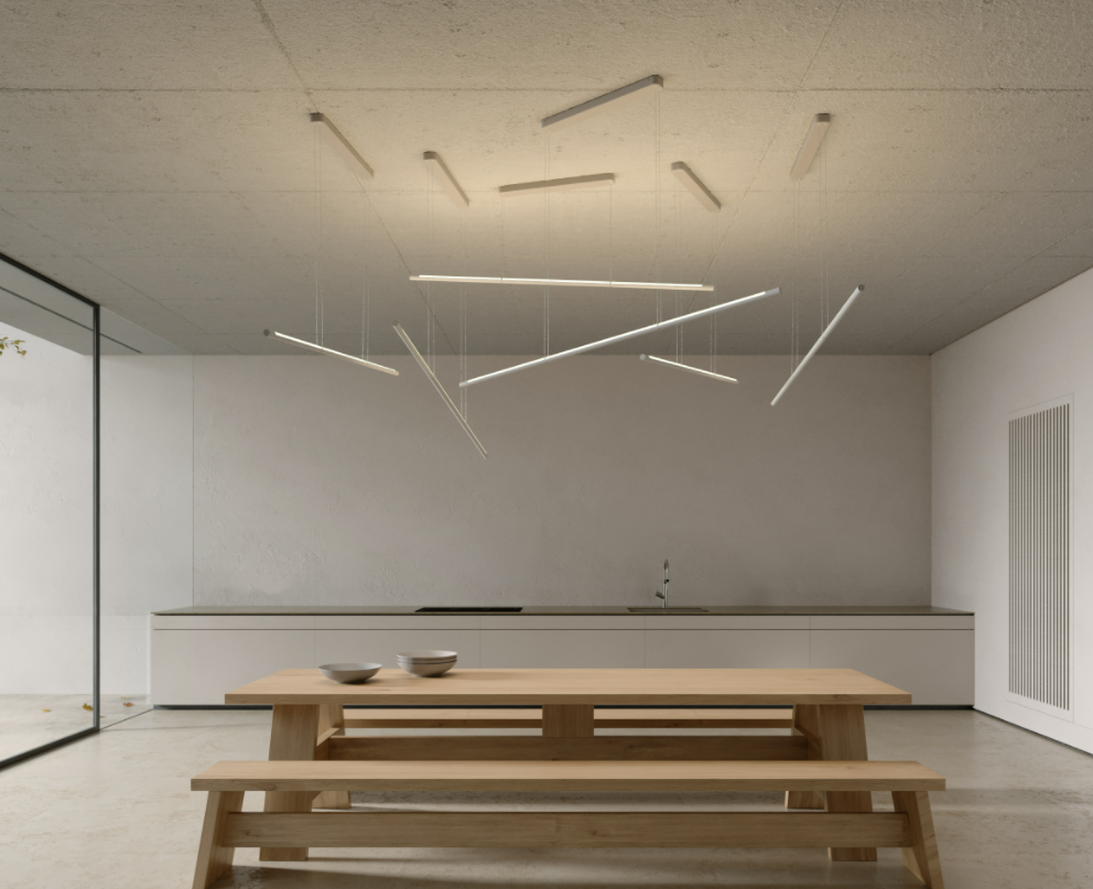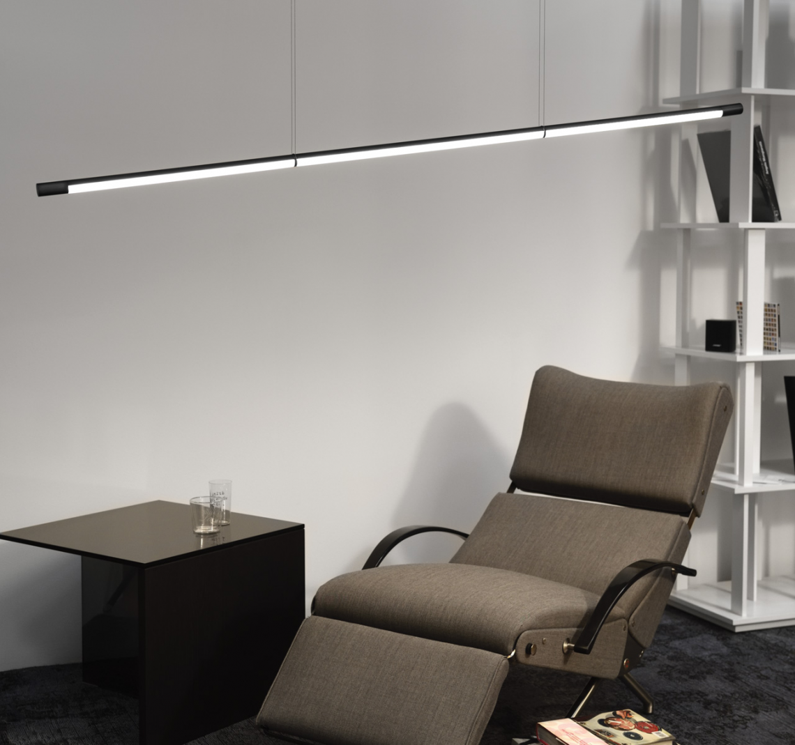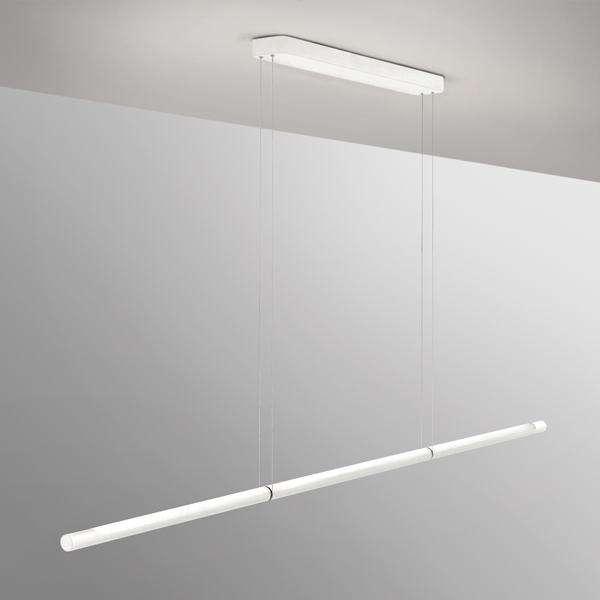 Technology and functional design are the key features of Volta, a hanging lamp designed by FROM Industrial Design that is so light it seems to float. With its simple and stylish tubular structure in lacquered aluminium, Volta hangs on two thin steel cables that power the light and suspend it.