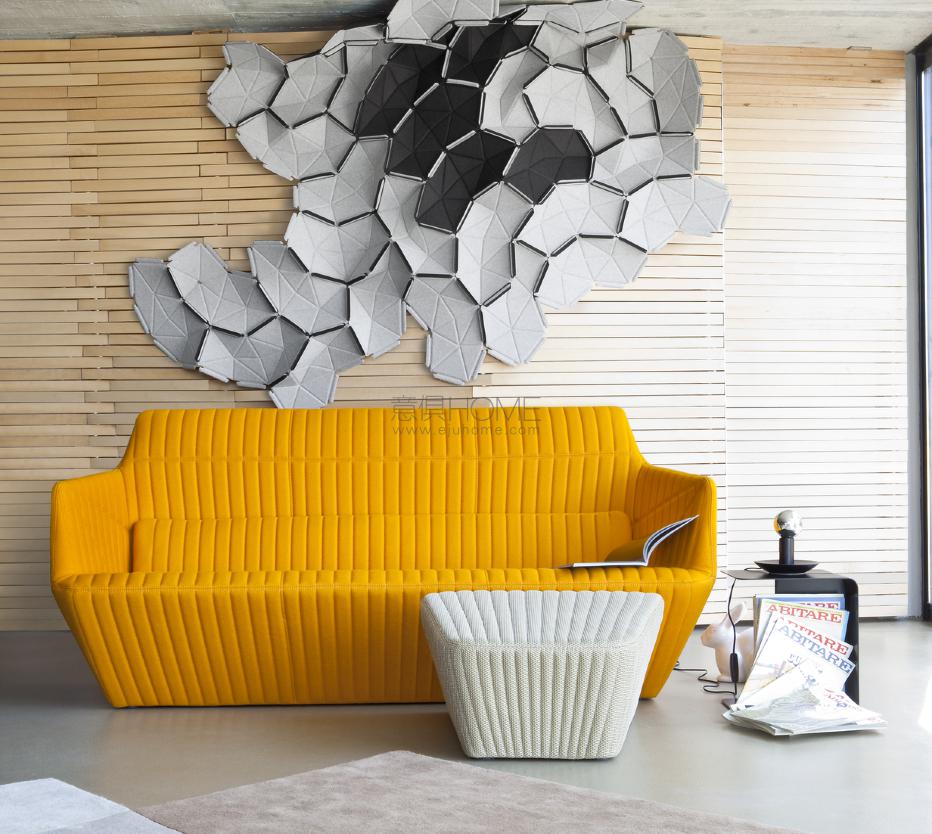 The basis of the Facett range is two settees and an armchair, complemented by two footrests (which can be used as extensions to the seating). The magic of Facett will touch all those who desire purity, without compromising on the perfection of the design. Compare for example the minimalist simplicity of its monolithic form with the ultra-sophisticated work involved in its realisation - in particular the stitching, the complexity of which recalls the cutting and shaping of a precious stone, or even the complex folds of origami.