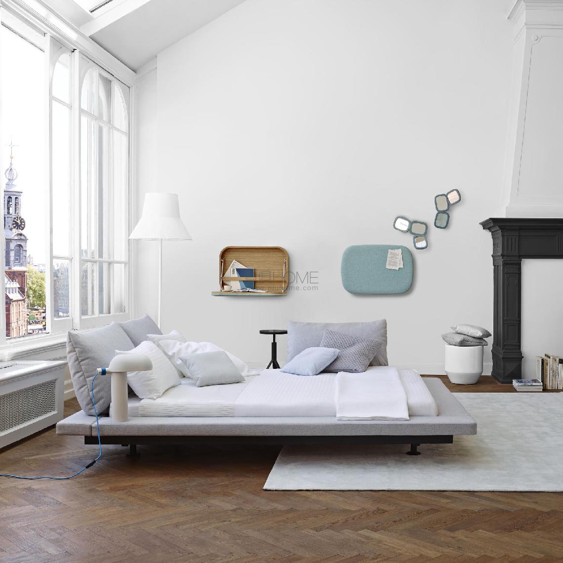 A new edition of the bed which has been a Ligne Roset best-seller for more than two decades, the Peter Maly bed is aimed squarely at those whose priorities for their bedroom are th e comfort, originality and aesthetics of their bed - those whose preference is for a pared- down bedroom offering generous space for rest and relaxation. Equally, in a small loft or studio, the Maly bed could also be used as a convivial space for entertaining or relaxing. The Maly bed is constructed around the idea of a vast central platform which is both soft and supple (slatted base, mattress and bedding), surrounded by horizontal planes for a more tautly rigorous geometric effect. The pillow/headboard cushions slide freely around the bed frame, allowing for a multitude of positions since there is no fixed way for the bed to be used.