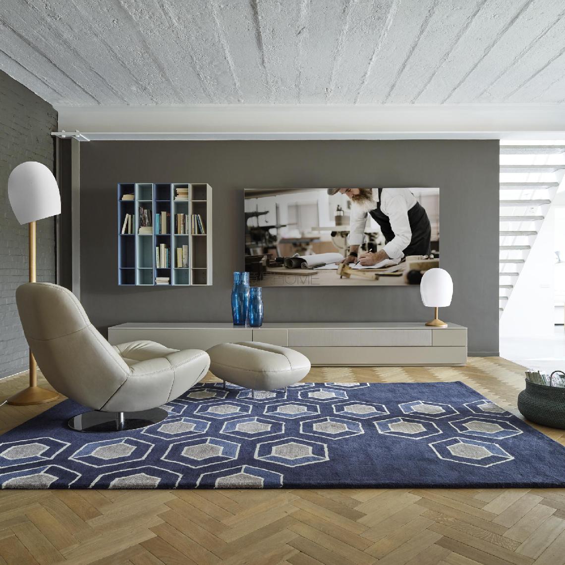 In 2016, Philippe Nigro set himself a new challenge : to reinvent the extreme comfort of the Ligne Roset all-foam seating of the Seventies. With Manarola, Philippe Nigro has designed a new type of seating which offers remarkable comfort and a very welcoming appearance. To achieve this, the whole seat seems like a single large cushion placed on a light yet assertive base. The metal frame which lends it shape is enveloped in foam and the upholstered part of the seat rests on the elegant solid wood buttresses supporting the back which make up the base. The armchair is also available on a circular steel base in a brilliant-polished stainless steel finish, which rotates 360°. To complement this there is a footstool with 4 steel legs, also in a brilliant-polished stainless steel finish. Then, thanks to the ultra-flexible new polyurethane foams, Philippe Nigro refines the initial welcoming feel and the feeling of softness which comes with use, making good use of the carefully-judged slopes of the backward-slanting seat, lumbar support and headrest, emphasised by horizontal bands of stitching.