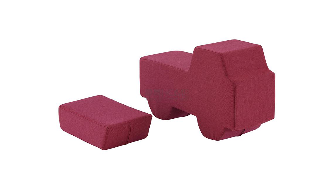 A proponent of highly functional design, angled towards everyday objects, Tim Brauns seeks above all solutions which are technically perfect and timeless in form. For Softruck, Tim Brauns dreamt up an intelligent, sustainable product in the archetypal shape of a small truck in two parts : the tractor and its load. A child will thus be naturally inclined not only to sit on it but also to play with it by taking his or her Softruck seat/toy apart and putting it back together again. Lorry made from anti-combustion polyurethane foam (density 40 kg/m3), upholstered in a polypropylene fabric (choice of rose or bleu). The upper cushion is removable and the covers of both sections are also removable.