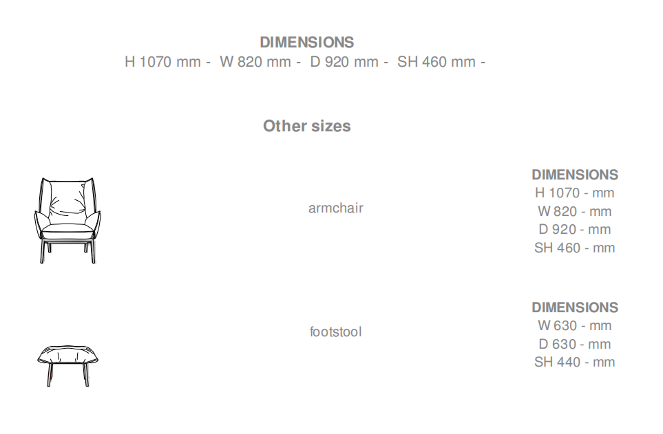 The shape of the Toa armchair suggests spontaneous, evocative folds. One simply must possess it; it is universal. The base - airy like a skeletal structure - screws into a quilted body. The footrest brings an additional note of comfort and relaxation. This armchair can have an informal side (in cotton-like fabrics), but it would be equally at home in a chic country home (in wool); it could even become quite formal, for use in a business lounge perhaps, when interpreted in leather. It will stand alone, accompanied by a lamp and low table, since all sides of this armchair have equal pertinence.