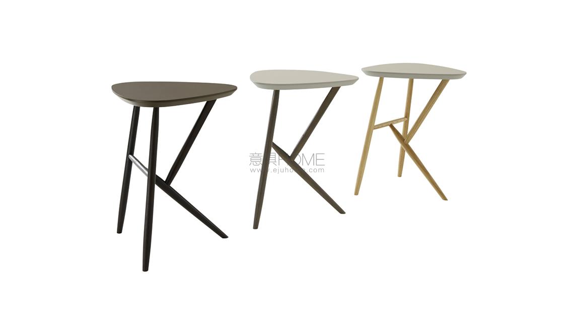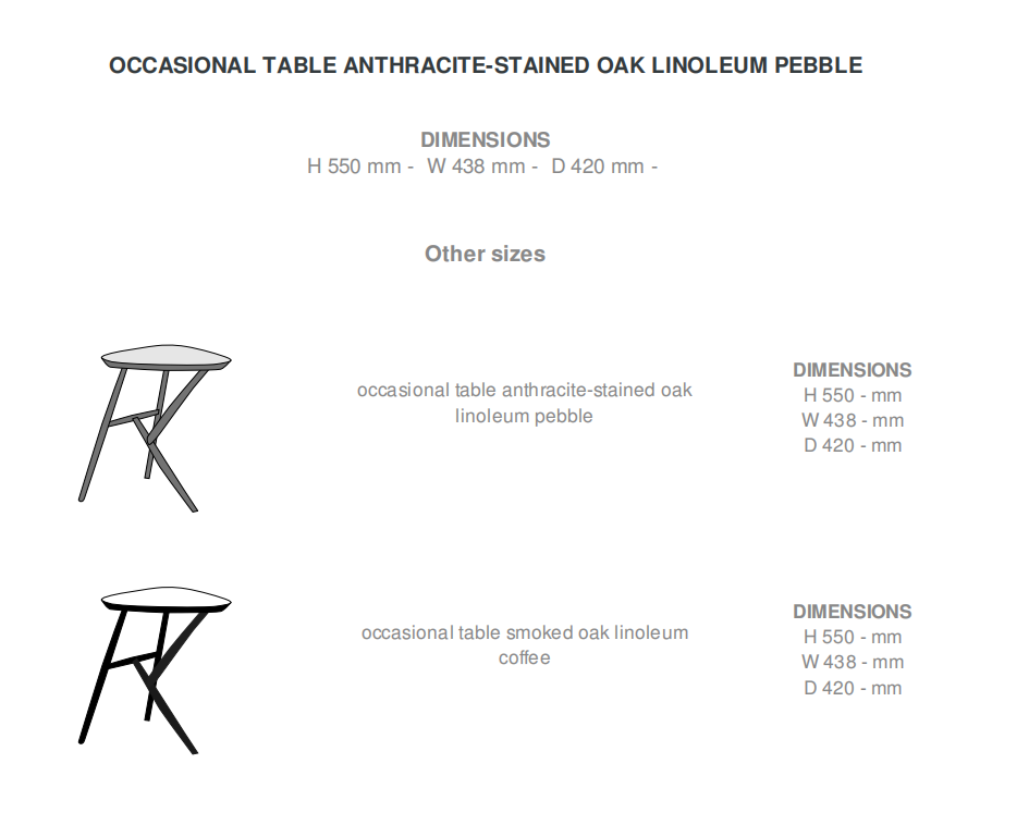 Occasional table with solid oak base and top in linoleum-covered MDF. Felt gliders.