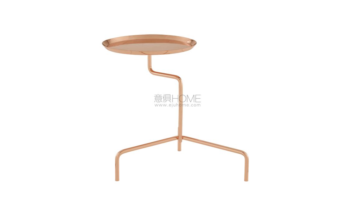 Occasional table with pivoting top (diameter 37 cm). Copper-plated base; top in satin varnished solid copper.