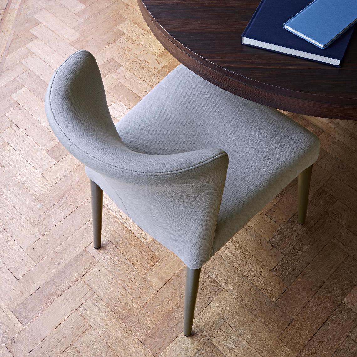 This dining chair combines elegance, comfort (thanks to the all-enveloping support offered by its curved backrest), availability (since it is held in stock in 7 colours) and a moderate price. As its name suggests, the whole concept of this chair is rooted in softness and roundness: the round legs echo the rounded shape of the back. The integral seat and back, clad in polyurethane foam, presents not a single hard point.
