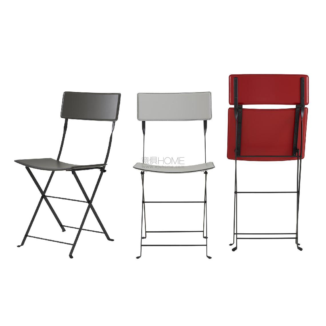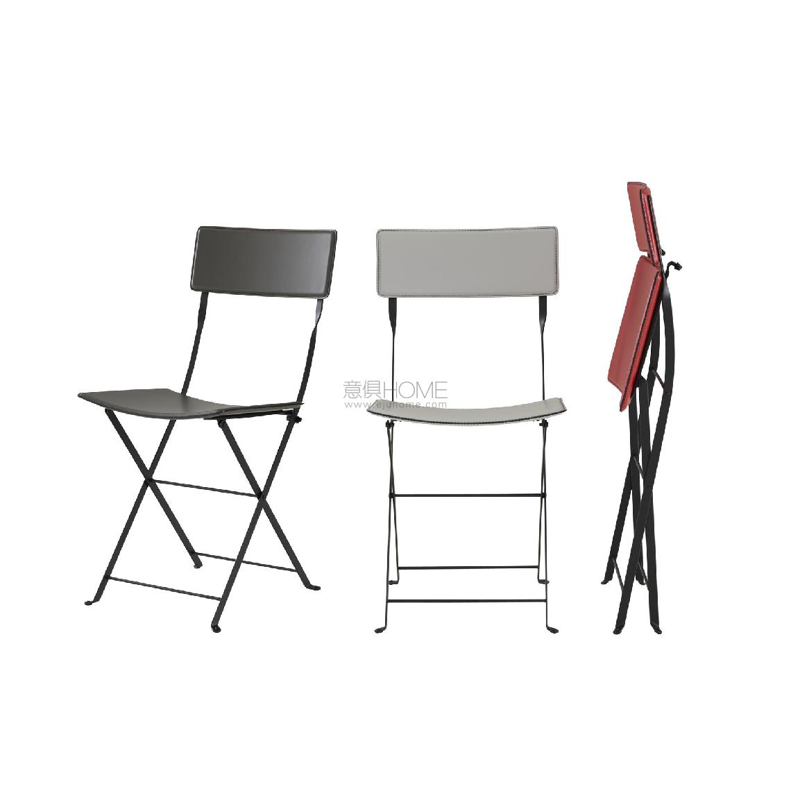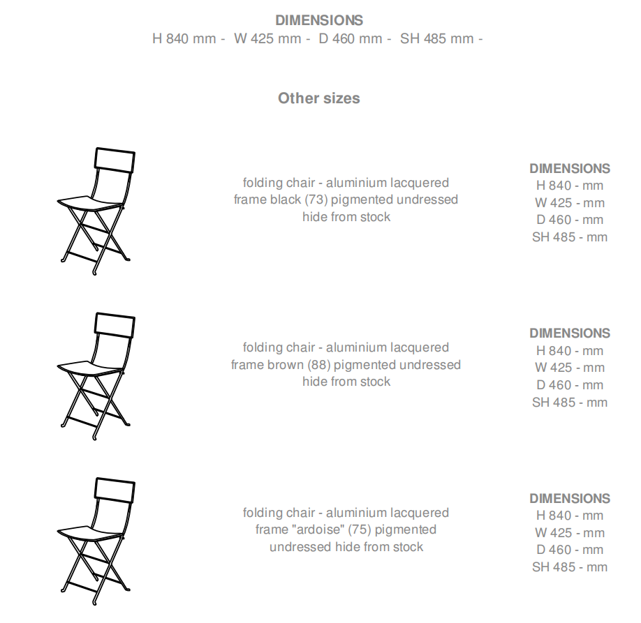 Chair with a lacquered steel structure covered in pigmented undressed calf hide; strong and easy to clean.