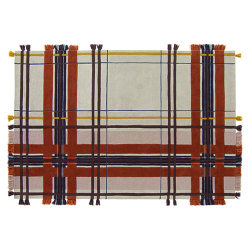 現代花格地毯飾面選擇:簇絨和雕絨。地毯是該系列的新產品,它的所有邊緣都有 8 厘米的流蘇,復古韻味十 足。 100%羊毛,手工簇絨。 花格布料是一種帶有五顏六色的方形圖案的羊毛織物,常用于凱爾特 人。它由色彩斑斕的線條縱橫交錯而成。花 格布料最初只用于織物,但現在也用于許多其他材料。因此,蘇格蘭短裙幾乎總是以花格圖案的織物制成。 花格布料由經緯紗中交替排列的質染線帶組成。緯紗是一種簡單的嗶嘰織物,而經紗上下有兩條絲,每織一段加 一條絲。這個圖案是由交替排列的彩色粗紡毛線以一定的角度編織而成。這將在每個交叉點形成對角陰影線,并 通過混合最初的兩個陰影來創建新的顏色。所得的色塊縱橫交替以創建獨特的線條圖案和方形圖案(即固定)。 自19世紀以來,蘇格蘭的花格布料就與各種氏族息息相關。
