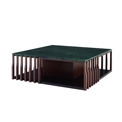 餐邊柜三間式有兩層,一層為單獨空間,另一層隔斷成兩個空間,餐邊柜四間式,雙層均隔斷成兩個空間。 餐邊柜有1個內部擱板,客廳家具有3個擱板。 茶幾十足精致。它有28個欄桿,每根欄桿底部寬,上部窄,以美國實心胡桃木制成,深色,涂清漆。每根欄桿都 由一個不可見的裝置固定,該裝置將其與地板連接,確保達到預期的堅固性。在頂層平板下方水平狀的配接板條 連接并固定了欄桿,它起始于最邊緣的欄桿,并向外連接其他欄桿。下部空間似乎沒有任何分隔,只有中央正方形物體鞏固了整體,加上67千克沉重的大理石托盤的重量,使整體 重達121千克——從外觀上卻看不出這個分量。中心覆蓋著深色胡桃木貼面與下部托盤的巧克力色漆形成鮮明對 比。它安裝在可調式地板墊 上,將其抬離地面20毫米。