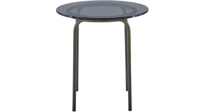 A fervent believer in timeless modernity, Eric Jourdan designed a mini-collection of occasional furniture which is chic and glamorous, classic yet contemporary. He designed it using ultra-simple yet highly expressive lines. The top in grey smoked glass brings an elegant sobriety which contrasts with the bronze finish of the four legs which themselves are discreet and very slim, almost frail. The rigorous minimalist construction marries with discreetly luxurious materials which flirt with the arty spirit of the gallery or high-end decoration: and the end result, two small, precious and infinitely seductive pieces. Pedestal table with structure and base in bronze lacquered steel and top in grey smoked toughened glass (flat polished edges).