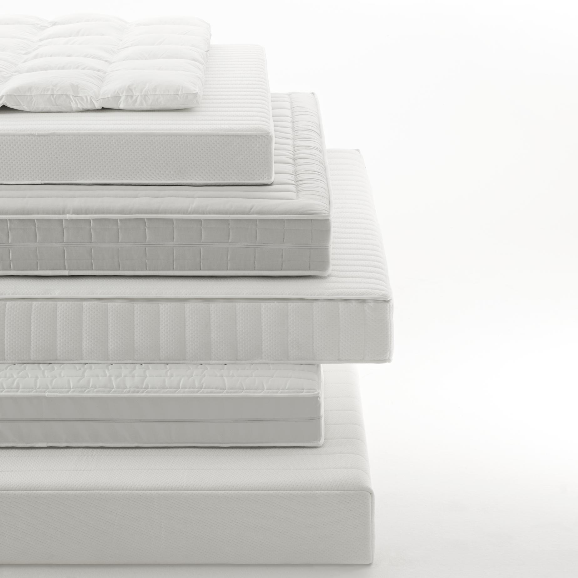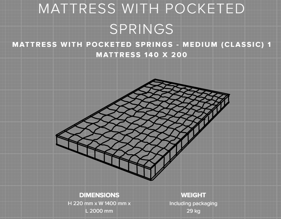 MATTRESS WITH POCKETED SPRINGS PREMIUM : For optimum adjustment to the weight of each individual body part, this mattress comprises an 18 cm high core with 7 separate zones of pocket springs in cotton pockets set in vegetable oil-based 'AirCon Cell' foam. Integral aeration system. Non-removable ticking in 59% viscose/41% cotton, quilted with 500 g/m2 pure new wool.