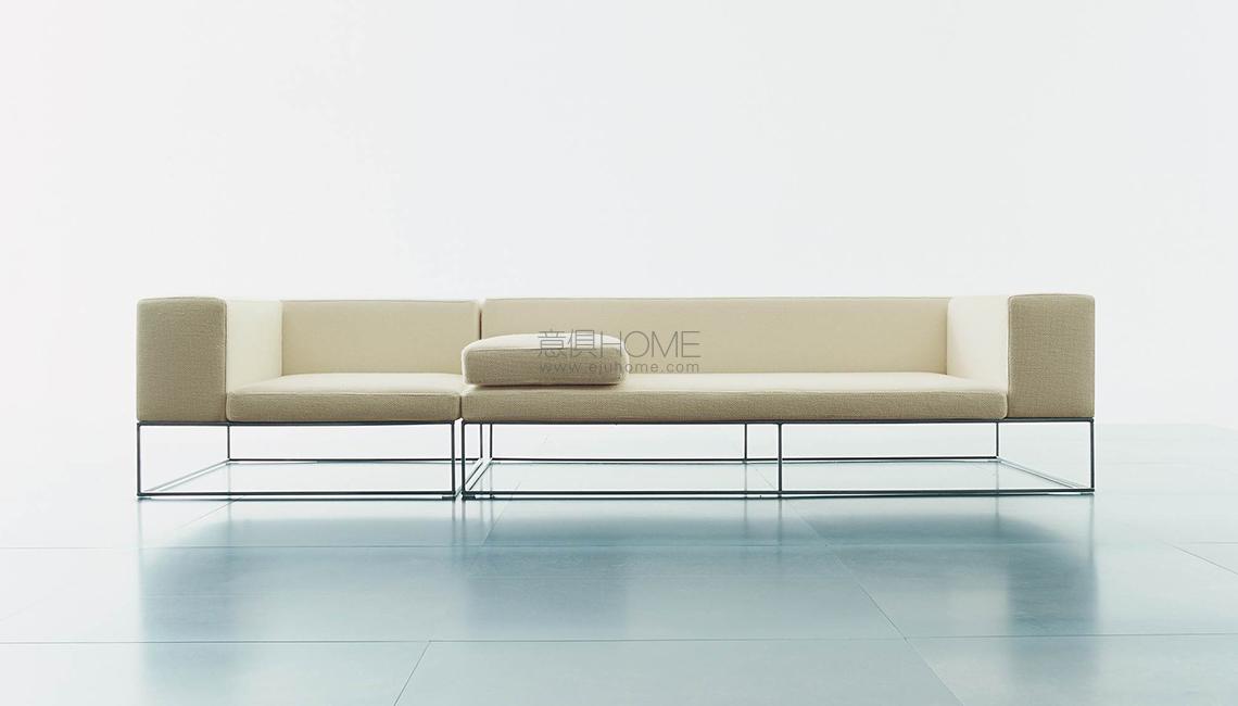 Elements with different sizes and armchair with armrest and back structure in double-panelled poplar and pine with padding in differentiated density polyurethane foam. Covering in needle punched, resinated, nonwoven polyester fibre, bonded onto a polyamide velveteen backing. Under-seat panel in self-supporting decorative HPL, plastic laminate panel, decorated on both sides. Seat cushions with preformed, differentiated density polyurethane foam, covered with acrylic fibre layers. Base in AISI 304 stainless steel square-section tube, with matt satin-finish. Fabric or leather upholstery, both fully removable by zippers and Velcro fastenings. Seat depth 67cm. Ile has undergone and passed the seat and back static load and fatigue tests (EN 1728:2000), with issue of relative certificate by CATAS?.