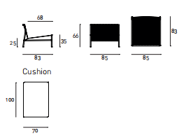 Armchair available for indoor and outdoor. Supporting structure in AISI 316 stainless steel with matt satin-finish. Swivelling nylon tips. AISI 316 stainless steel mesh. Indoor: seat cushion in differentiated density polyurethane foam, coated with acrylic fibre layers. Outdoor: seat cushion in open cell structure polyurethane foam FILTREN?T. Upholstery with outdoor fabrics only. Cushions’ upholstery, in both versions, fully removable by zippers. Seat depth 68cm.