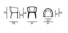Small armchair available for indoor and outdoor. Indoor: one-piece frame with steel insert and flexible, cold-expanded polyurethane foam padding and seat padded with polyurethane foam. Covering in 100% polyether thermally bonded onto a polyamide velveteen backing. Base in squaresection 15x15mm AISI 304 stainless steel tube, with matt-satin finish. Fabric or leather upholstery. Outdoor: one-piece frame with steel insert and flexible, cold-expanded polyurethane foam padding and seat padded with polyurethane for outdoor. Covering with waterproof fabric. Base in square-section 15x15mm AISI 316 stainless steel tube, with matt-satin finish. Upholstery with outdoor fabrics only. For both versions, the fabric upholstery only is fully removable by zippers and Velcro fastening. Seat depth 41cm.