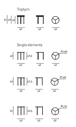Set of 3 stackable tables with supporting frame in matt black epoxy powder coating RAL-K7 9017 and wooden tops. Each table features a 15mm thick MDF top veneered in three different combination of wood through inlay work, with waterbased acrylic paint finish. Base consisting of 3 legs in laser-cut tube’s section (?25/32/40mm) welded to the laser cut 5mm thick steel sheet under top frame. Black plastic foot tips inset in the legs. Dimensions: 1- diameter 46cm: h46, wood types: Thermo chestnut, chestnut, elm. 2- diameter 46cm: h49, wood types: Thermo larch, Thermo oak, Thermo douglas fir. 3- diameter 46cm: h52, wood types: Thermo acacia, Thermo eucalyptus, Thermo chestnut.