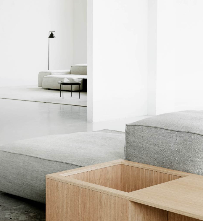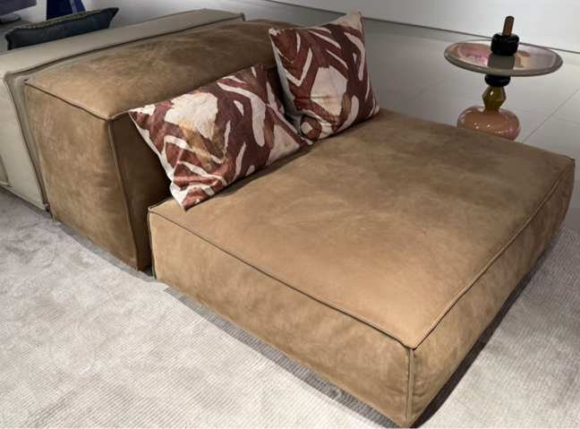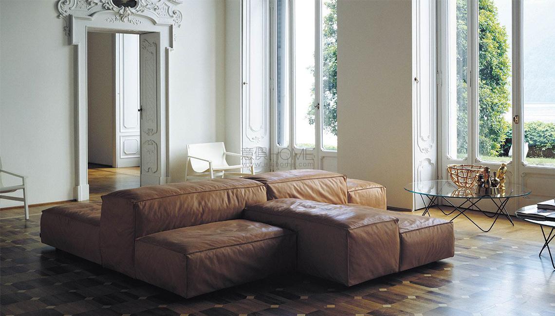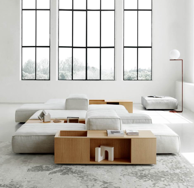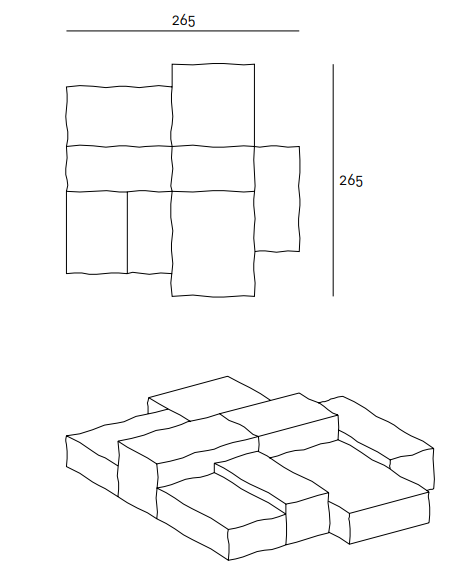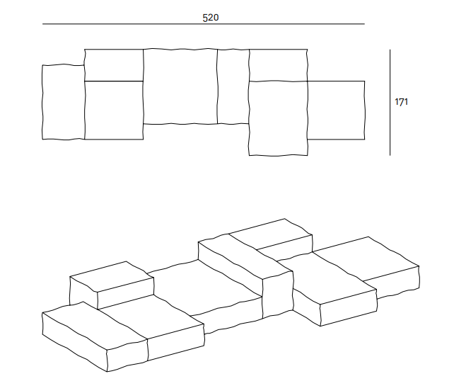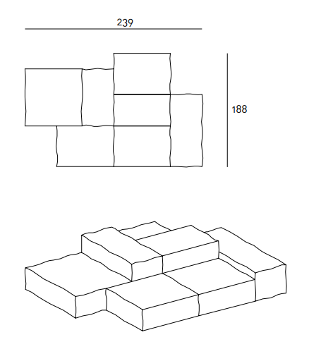 Modular sofa with a casual aspect and a soft, more yielding and malleable comfort. Cosy and restful seats which can be placed next to each other in a geometrical configuration, but with irregular contours.