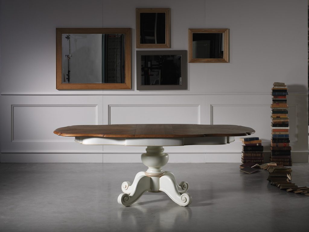 San Clemente, the table for the dining room, is characterized by the strong central leg and by the soft silhouette that define the original shape of the top.