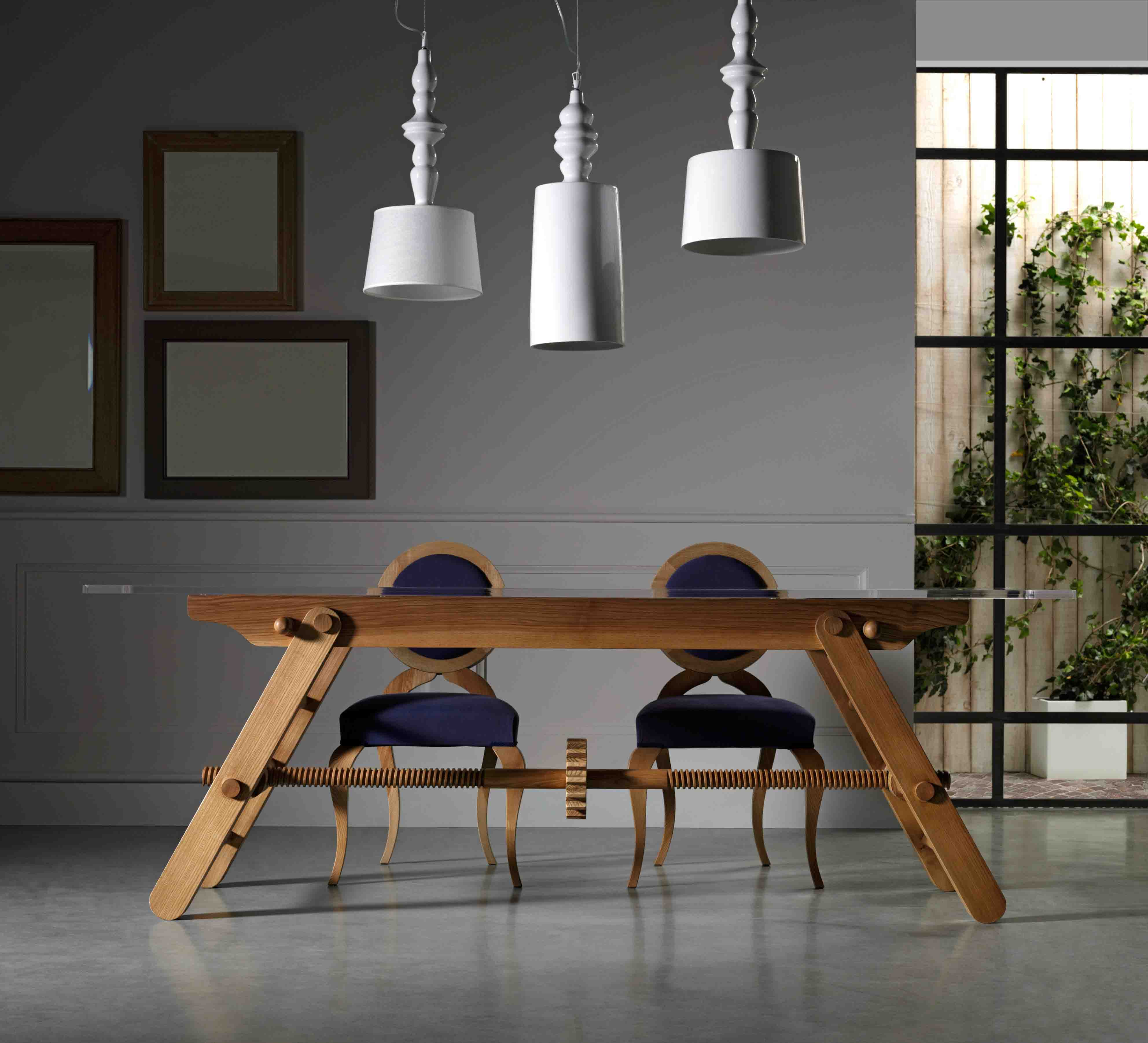 Compasso is a handcrafted table whose whole structure is in ash while, the top is in extra clear glass.
