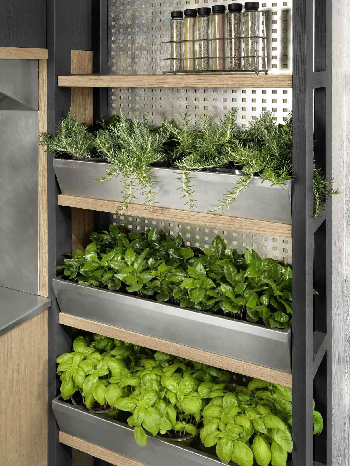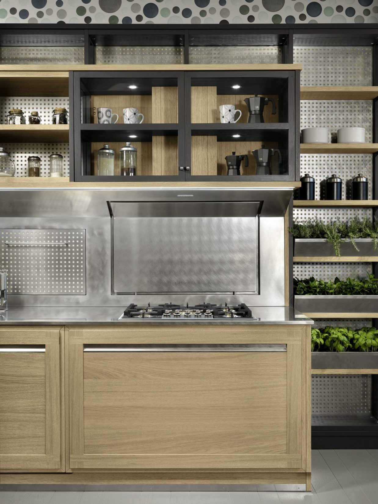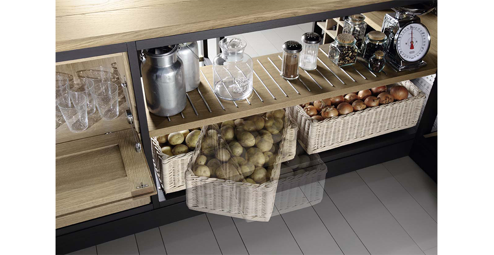Small equipment represent a great help to arrange space in the kitchen: steel grilles and special supports allow the adjustment of shelves inside cabinets and tall units.