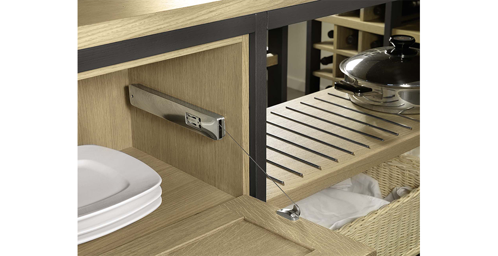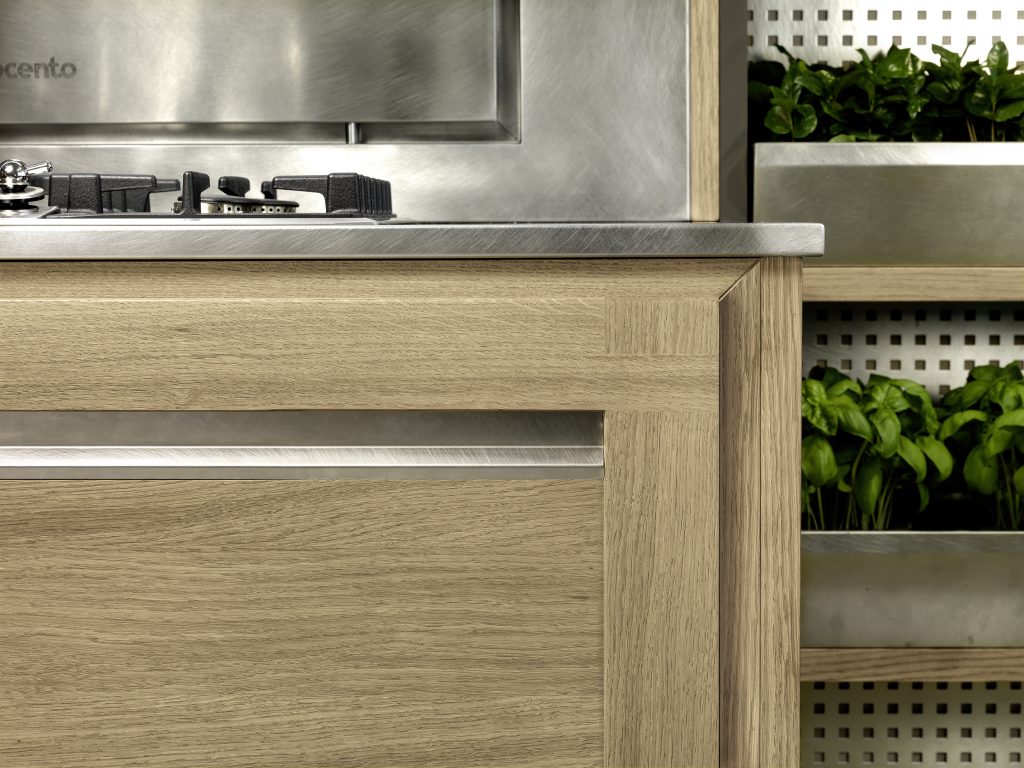 The typical ‘Tenone joints’ of Roveretto kitchen joins the corners of the door through a meticulous manufacturing and becomes an aesthetic plus and a technical virtuosity granting its solidity in the course of time.