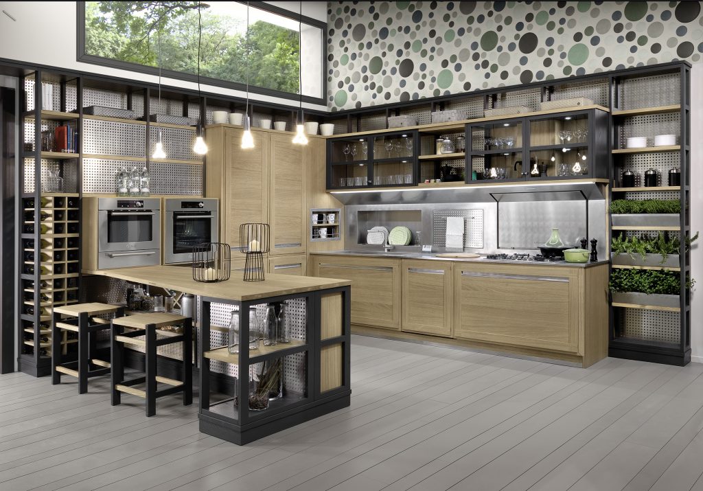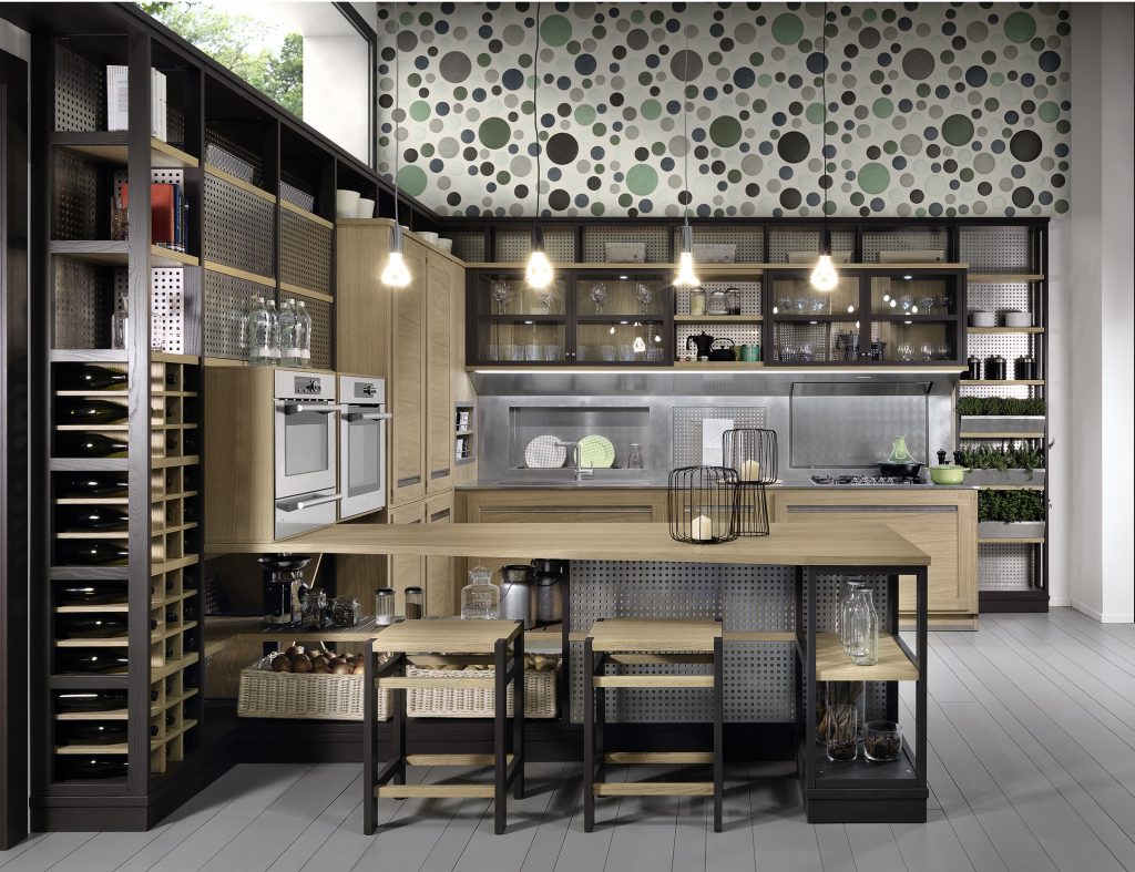 The eclectic Calendario system in open sides frame version could meet any exigency of space arranging in the kitchen or, it could become bookshelf and TV unit in that space equipped for living area.