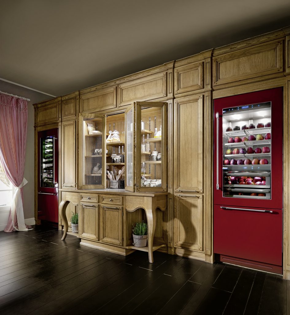 Elegant proposal of Monterey kitchen recalls precious classic accents as handicraft craving and the wooden decors matching them to traditional material and creating a concept of warm atmosphere.