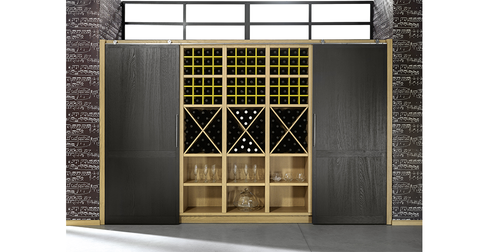 The technical and aesthetical steel equipment of Industrial Chic discreetly highlight the metropolitan mood of the kitchen. Wide sliding doors with visible mechanism, drawers and integrated handles for doors give the wood a new casual and contemporary language.