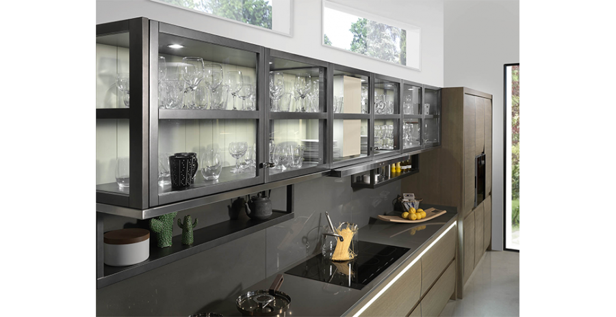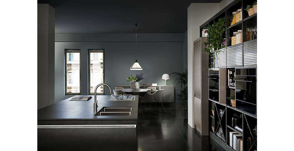Chronos kitchen, conceived to meet any aesthetic or functional need thanks to the central island or the peninsula element fully shows its eclecticism through tailored solutions designed for the different spaces of the house.