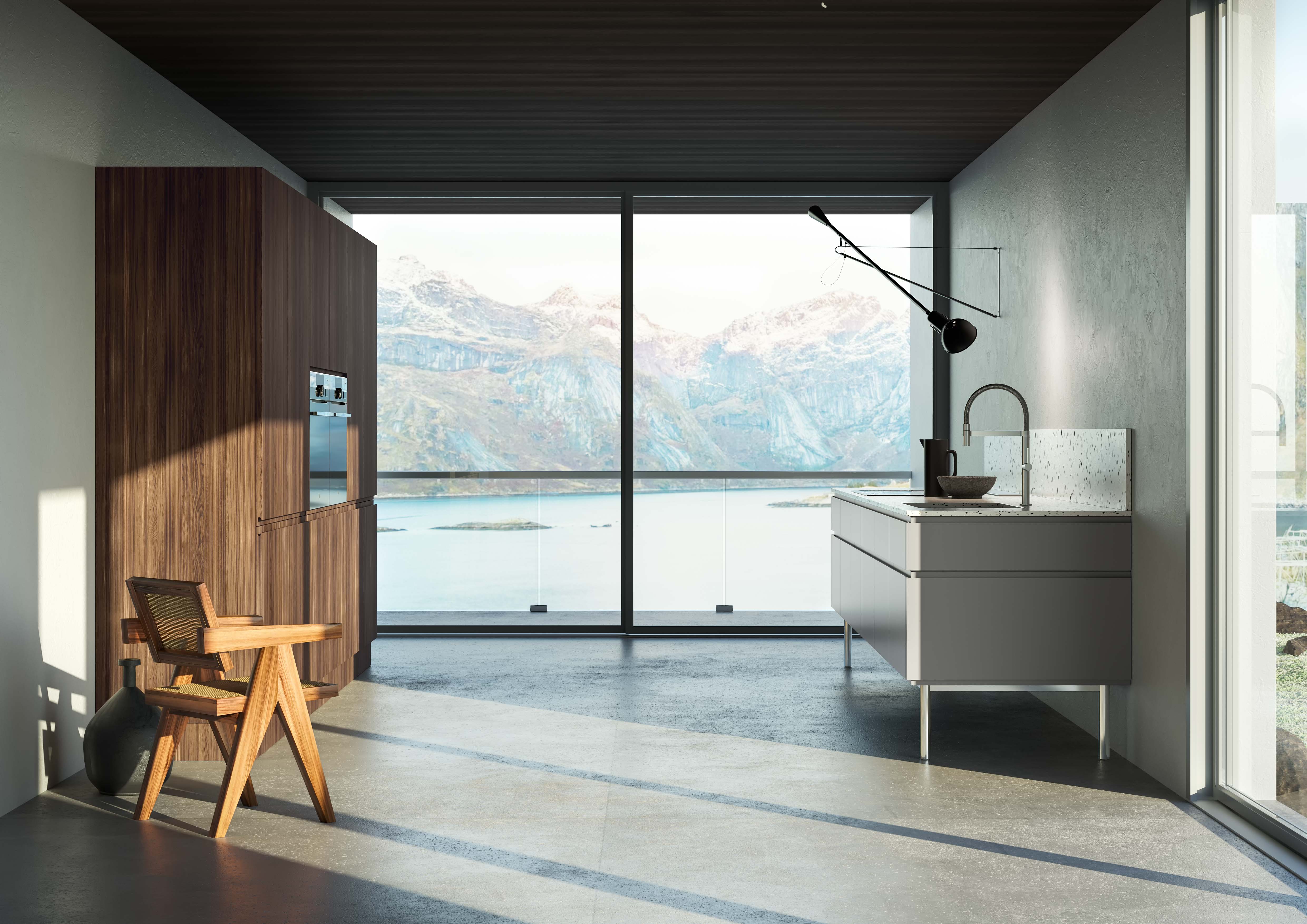 Creative and functional design by L’Ottocento is focused on each detail of a realization: conceived as a suspended element, Archetipo could house electrical appliances as compact oven or dishwasher.