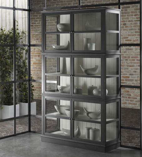 Veranda reflects the charm of glass cases, popular in the first half of the 1900s, revamped and reinterpreted here with new colours. For use in big kitchens to store dishes and tableware, and in living rooms and studies for use as bookcases.