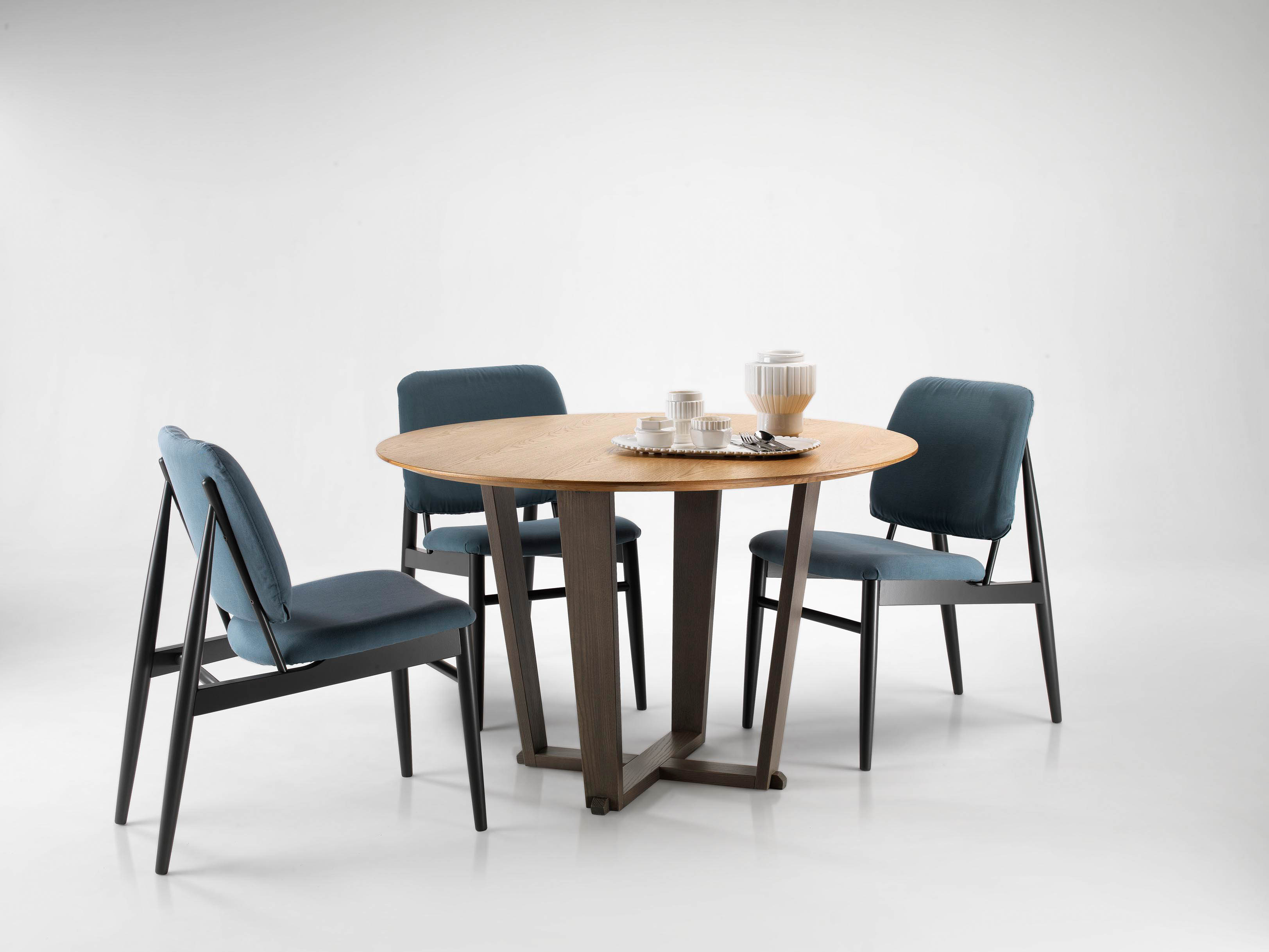 The Alma chair has a chic soul, which is expressed in its geometric essentialist lines, rigorous and harmonious at the same time. A design that satisfies the desire to surround oneself with versatile, yet characterful accessories, perfect when paired with linear tables characterised by a retro style, such as the Convivium or Modus table.