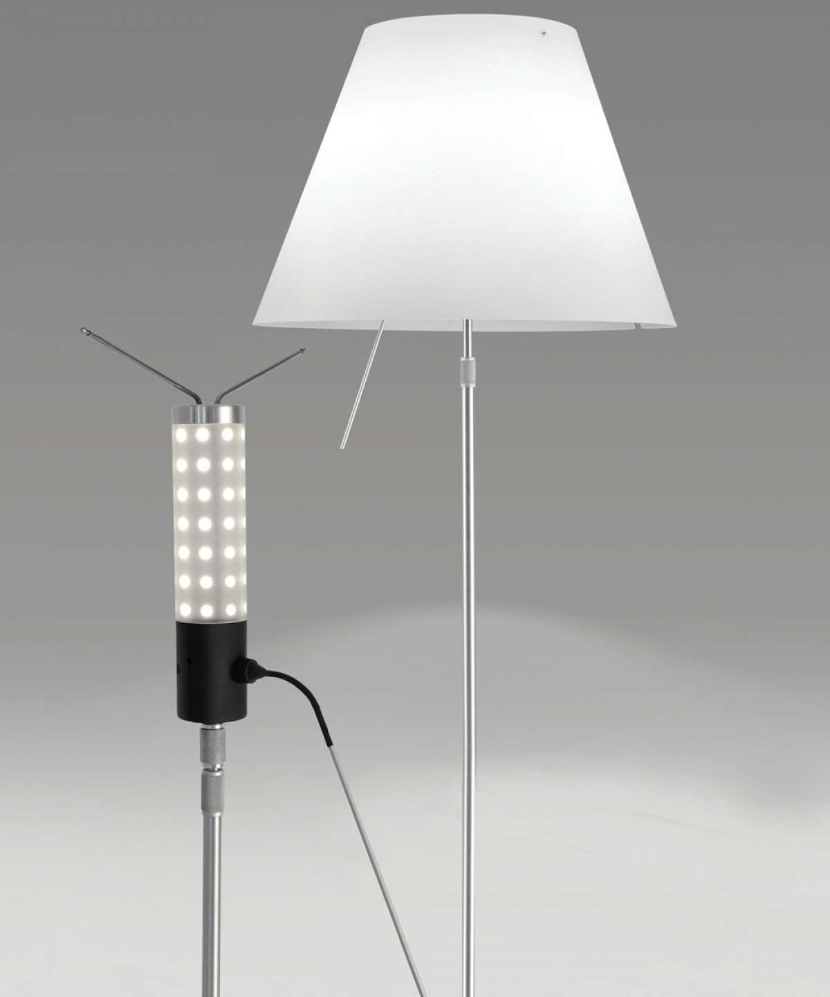 The adjustable suspension version of Costanza offers great flexibility and adaptability to different needs, thanks to the characteristic stainless steel counterweight for easy height regulation. The built-in LED system provides the highest levels of lighting performance, while the polycarbonate shade spreads warm, diffused light.