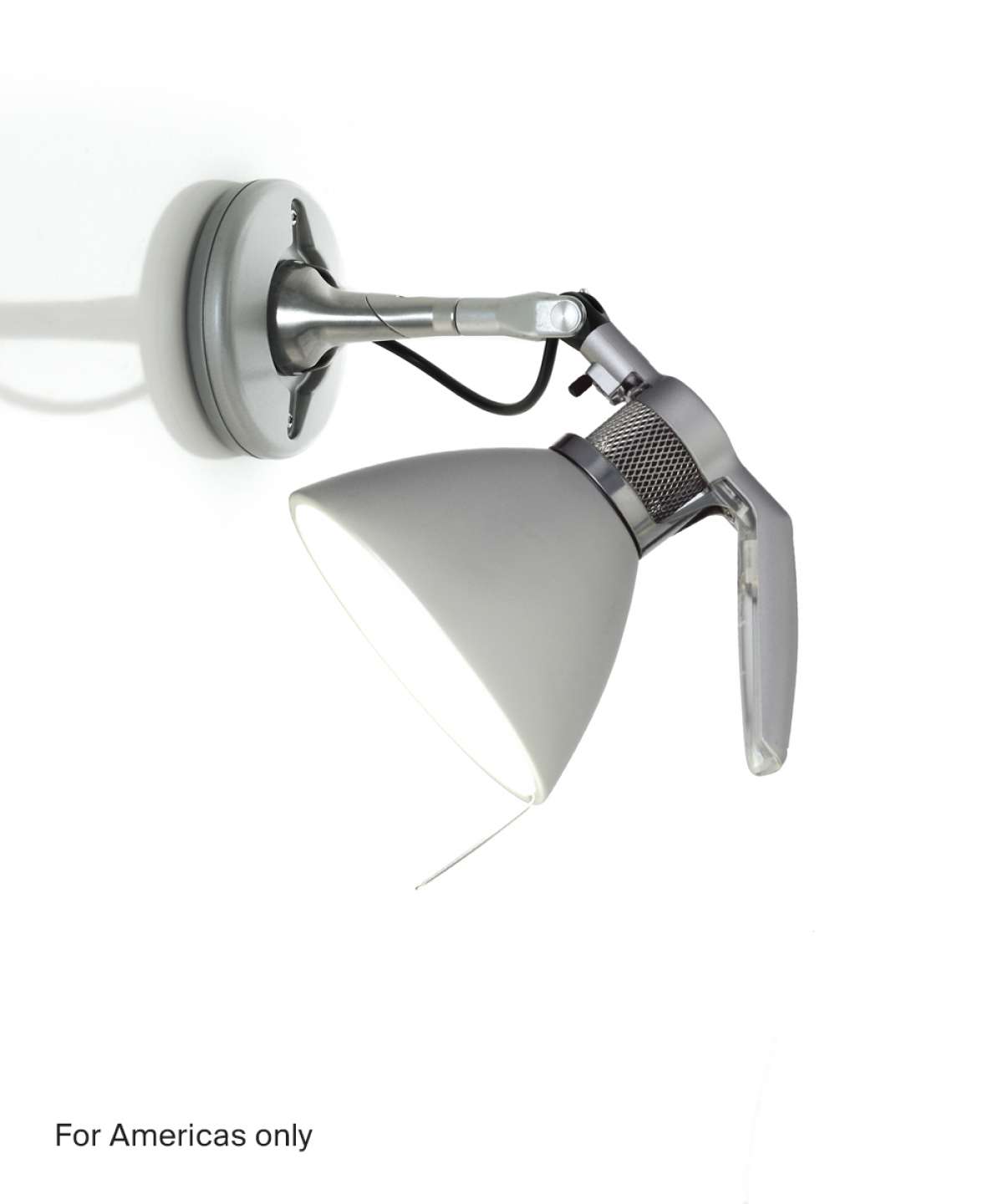 Fortebraccio guarantees a total light positioning freedom. The lamp’s distinctive handle conveys a highly charismatic, formal look, and provides an intelligent solution to the problem of directing light emission. Moulded in polycarbonate, it includes a switch and is designed in such a way as to be easily held and manoeuvred. Available in aluminum, glossy white or soft-touch black finishes.