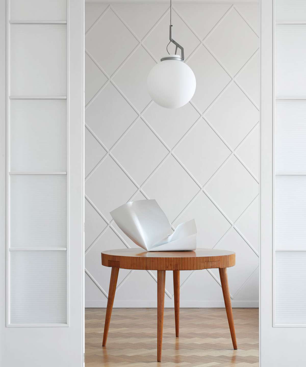 The versatility of a modular system, the elegance of fine craftsmanship. The die-cast aluminium structure securely grips a series of glass shades, made with traditional glassblowing techniques. The load-bearing electrical cable is housed in a steel sheath.