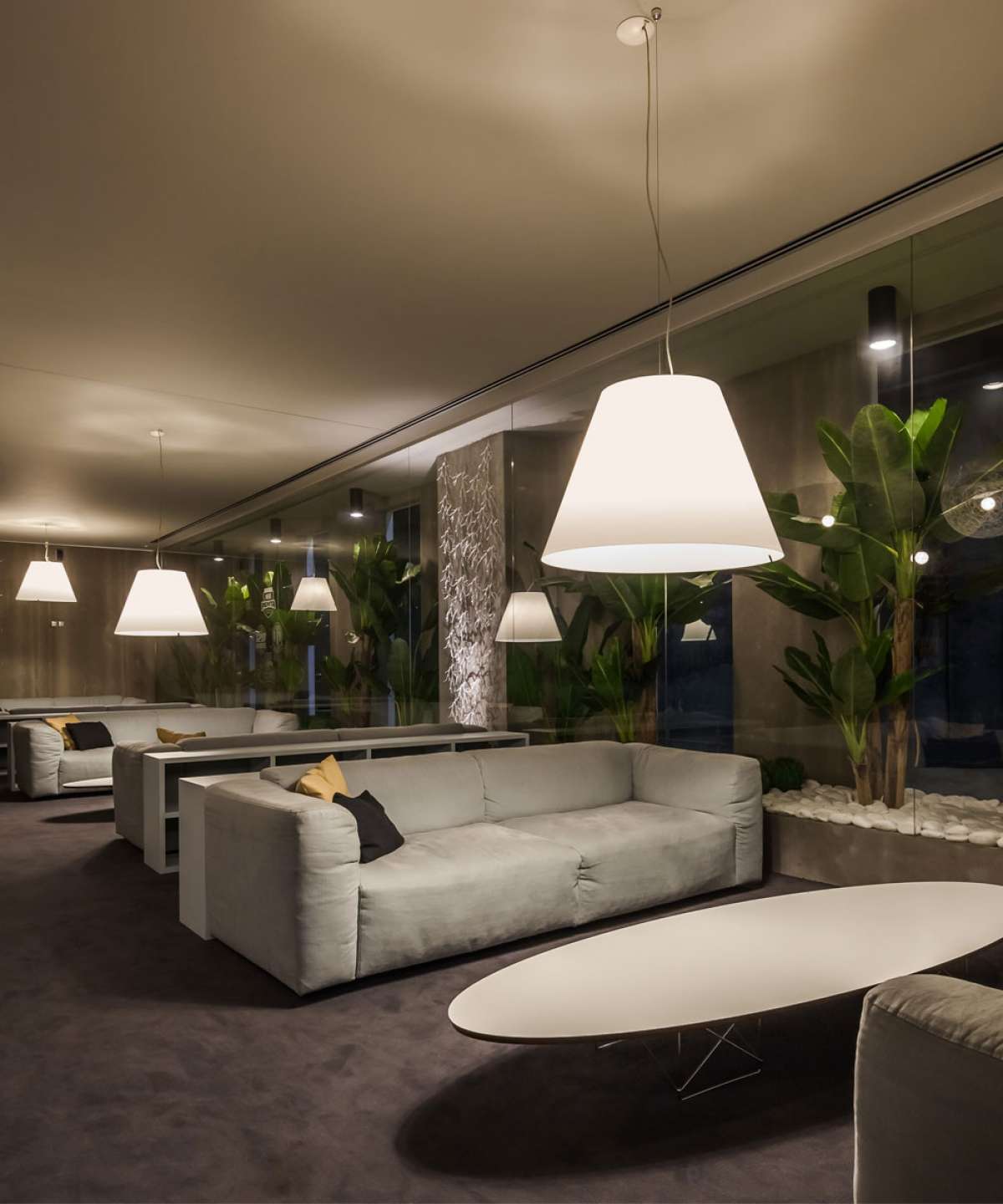 As visible as it is lightweight and balanced. The thin polycarbonate shade emits a pleasant glow that brings warmth and brightness to domestic and public spaces.