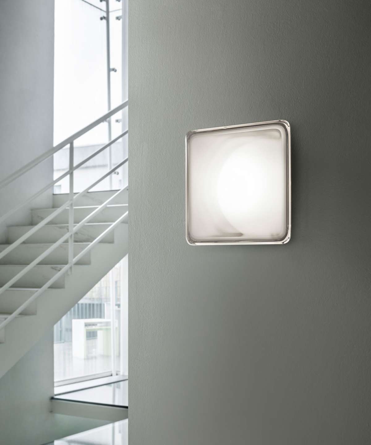 Much thinner than a traditional applique, Illusion is an LED wall lamp that significantly reduces energy consumption. The look of a sphere within a square is generated by the optical effect of the Fresnel lens; the body of the planar light fixture has a thickness of just 4 centimeters.