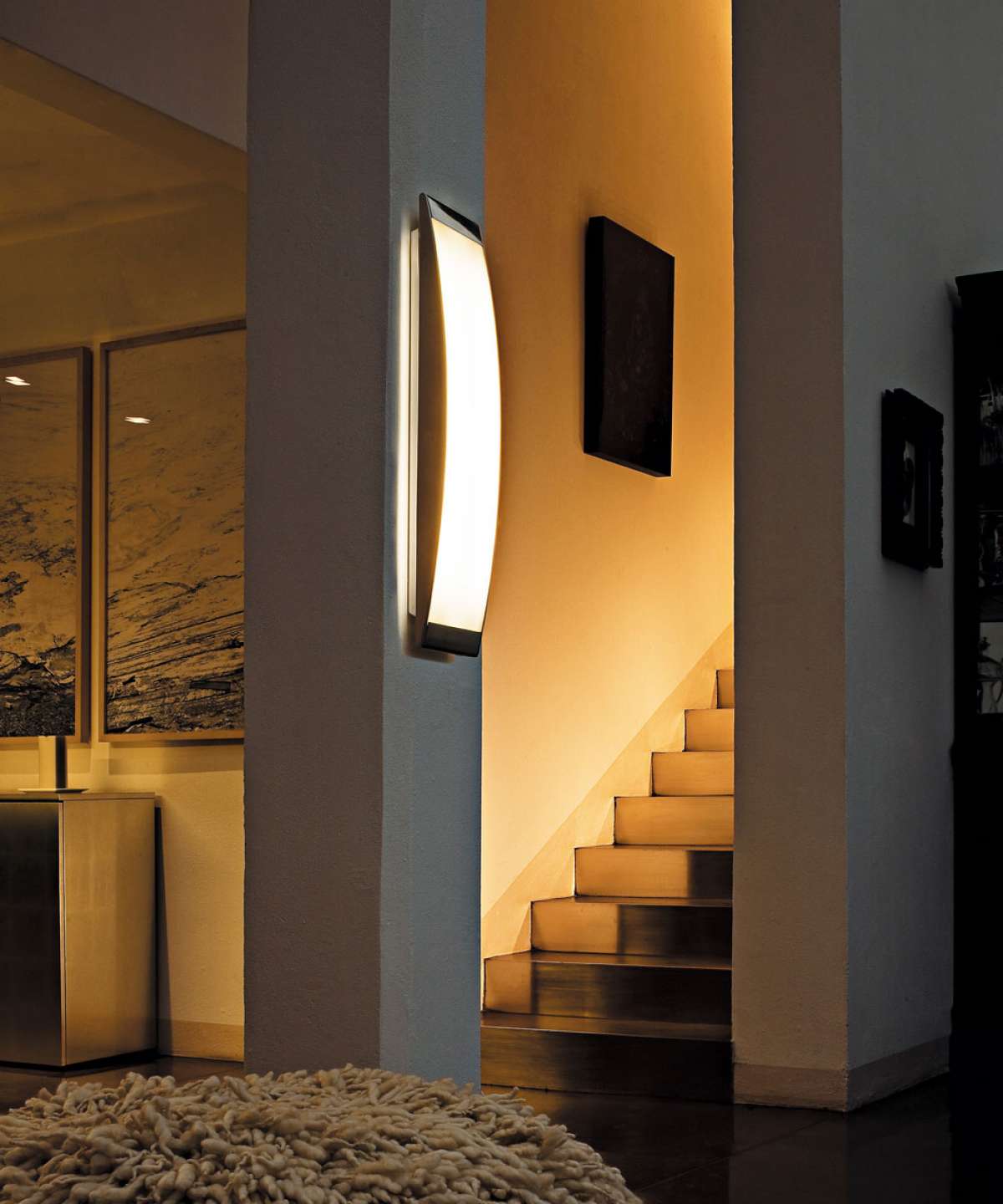 Strip is a family of very thin wall, ceiling and suspension lamps whose modular design permits use in sequences and groupings determined by “balanced” geometry. A few basic constructive parts like the die-cast aluminium uprights, the separator sections in extruded aluminium, the housings containing the electrical components, and the diffuser screens in opaline polycarbonate, make it possible to create modular lighting objects of different sizes and luminous intensity.