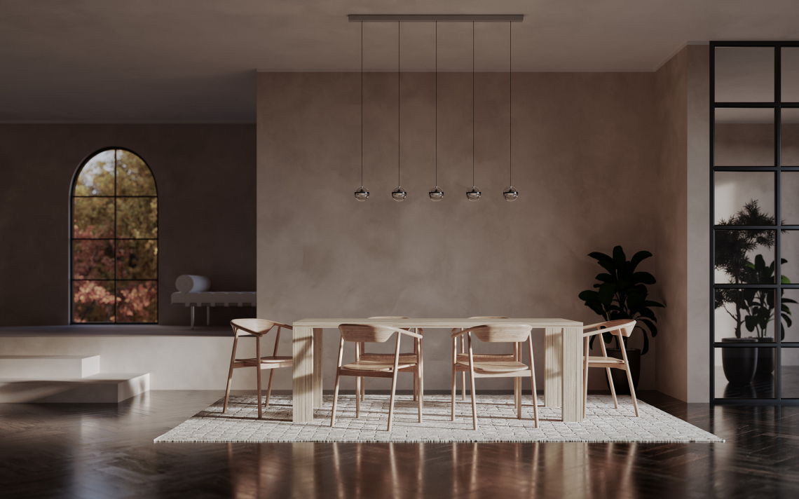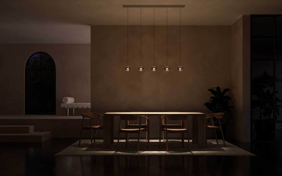 The Limbus is a direct light pendant lamp designed by Emanuele Ricci. It looks like a small luminous planet shining its light downwards.