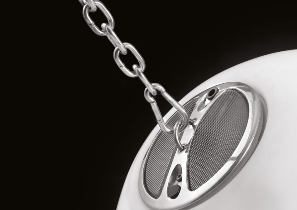 The system for fixing the cables to the sphere was designed, engineered and patented by Lumina.