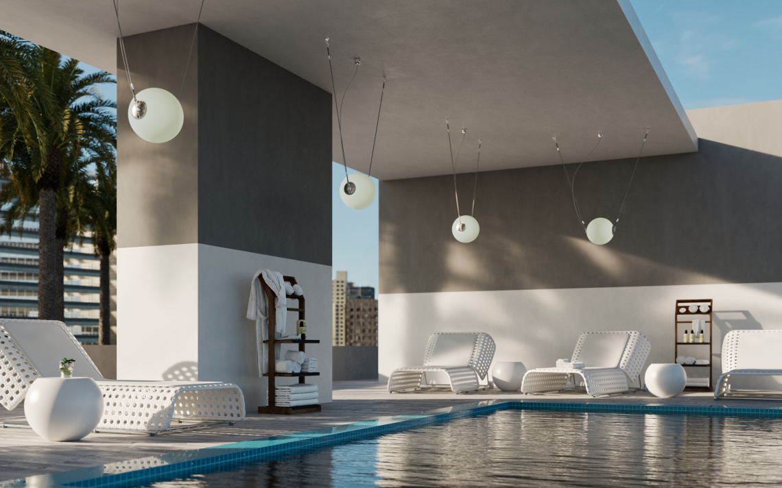 The resulting composite system is ideal for stylish lighting of outdoor spaces, from gardens to terraces, where it creates a sophisticated and romantic atmosphere.