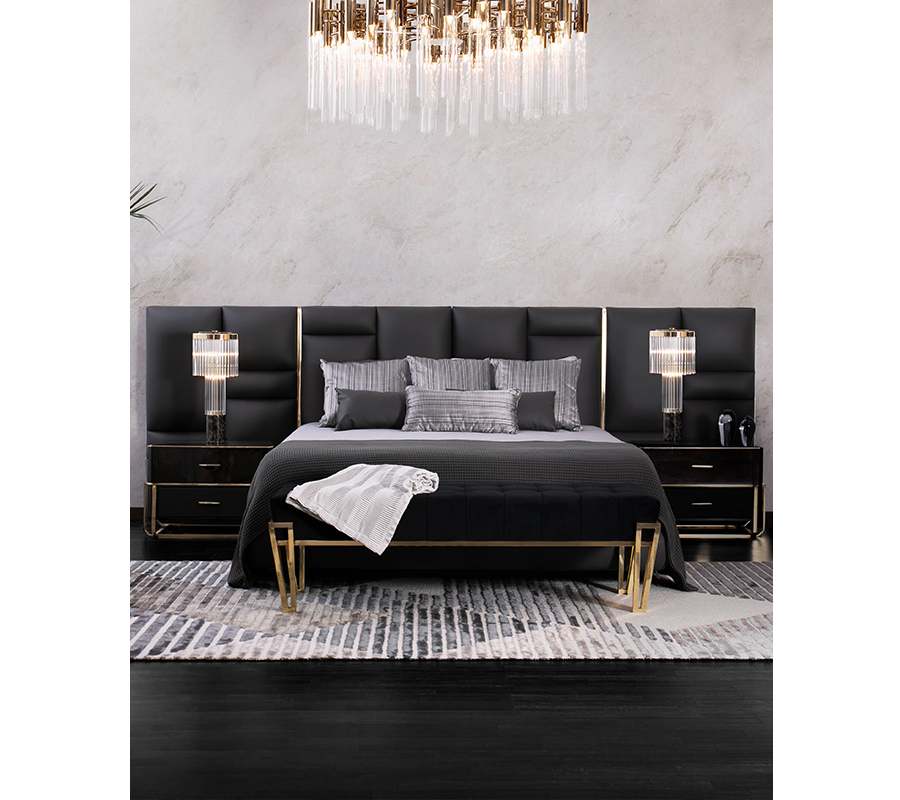 Inspired by the walls of French castles, this magnifique headboard takes every bedroom and turns it into the most exclusive chamber. Made with leather and gold-plated brass bars, it’s a modern headboard that will make an impressive statement in any bedroom - modern or stately.