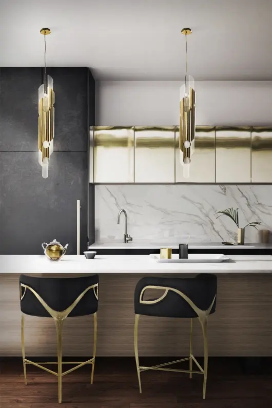 Draycott Tower was the reason to create the Draycott pendant. Its structure has 3 tubes like the original inspiration made in brass and crystal glass. Transmitting elegance and purity to every space, the reception or lobby areas can be a perfect place for this gorgeous modern pendant lighting.