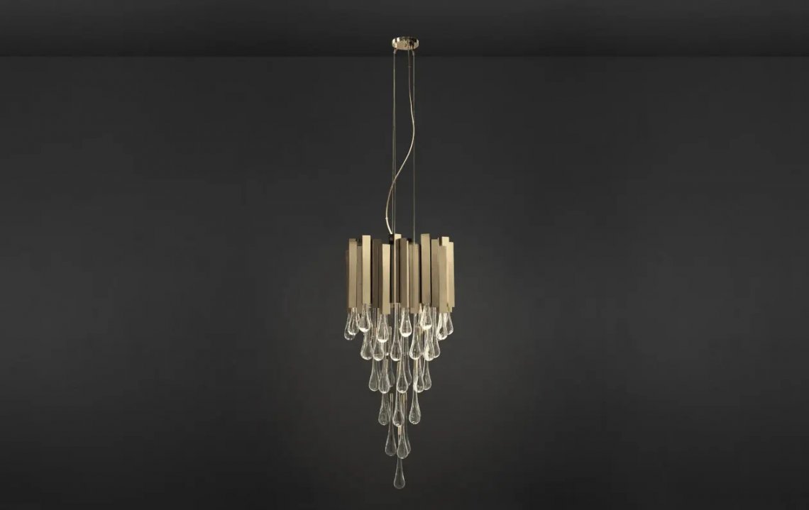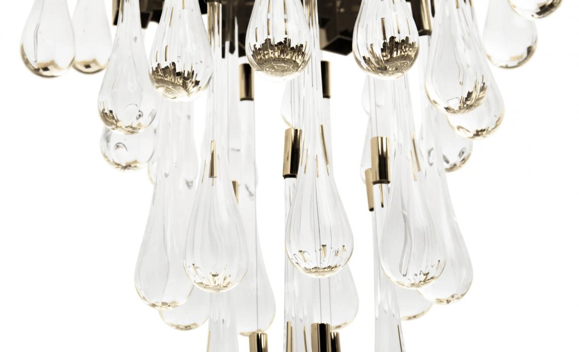 Trump Chandelier is a large gold crystal chandelier was sculpted to convey a similar aesthetic of its lineage. On top, connected gold-plated brass structures serve as the main base for an opulent crystal glass masterpiece placed underneath. Each one of these sublime glass tears was designed with high attention to detail and traditional craftsmanship techniques. The perfect luxury chandelier for a refined ambiance.
