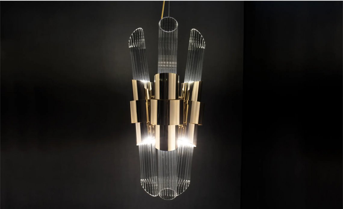 Drawing inspiration from the most unusual planetarium in the world, the Tycho Chandelier is a layered lighting fixture made of high-quality brass rings and crystal glass tubes. Highly decorative and elegant, the Tycho fits perfectly into modern lounges and dining areas.