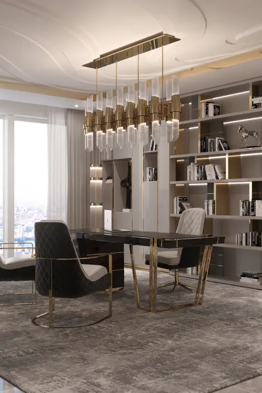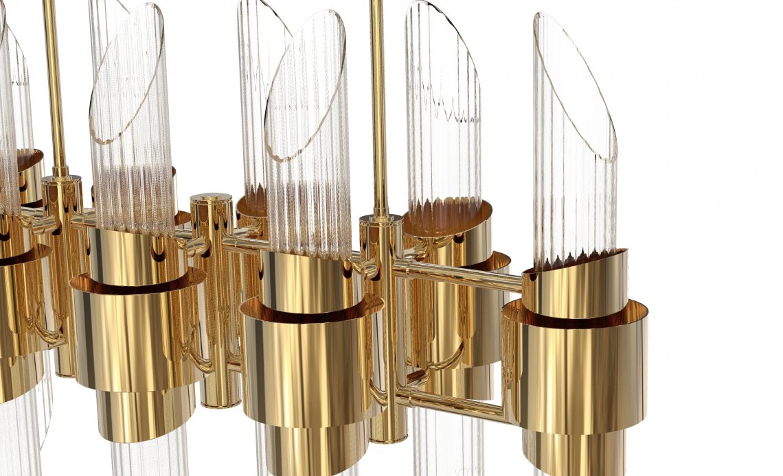 Drawing inspiration from the most unusual planetarium in the world, the Tycho Chandelier is a layered lighting fixture made of high-quality brass rings and crystal glass tubes. Highly decorative and elegant, the Tycho fits perfectly into modern lounges and dining areas.