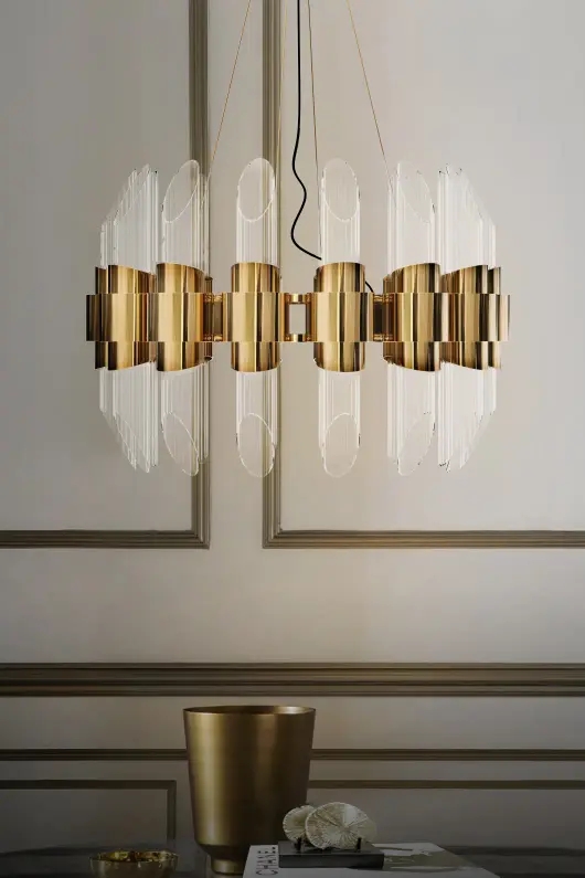 Drawing inspiration from the most unusual planetarium in the world, the Tycho Chandelier is a layered lighting fixture made of high-quality brass rings and crystal glass tubes. Highly decorative and elegant, the Tycho fits perfectly into modern lounges and dining areas.