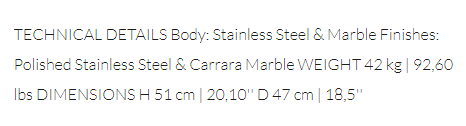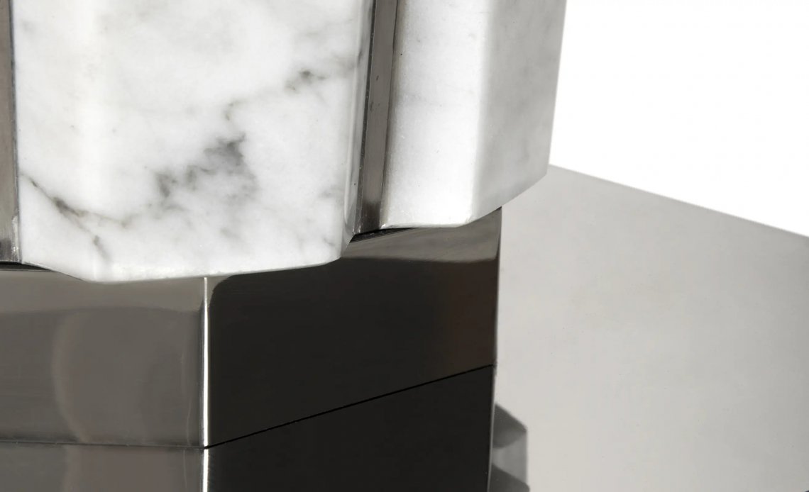 Sculpted in Carrara marble and lined with polished stainless steel, Suspicion is the ideal side table for an outdoor area, whether by the pool or a relaxing lounge. Bringing a lavishing luxury touch to any space and joining the best of handcraft and design.
