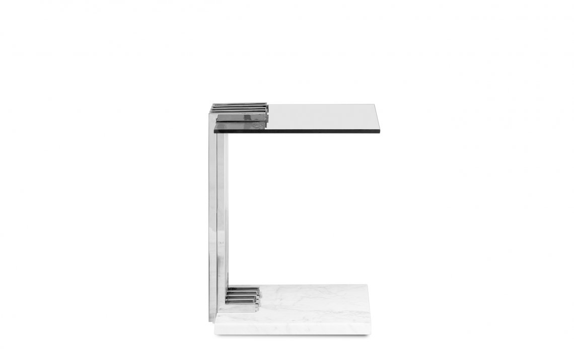 With a sublime shape, this side table is the highest proof of ultimate design. Designed with perfectly crafted marble and stainless steel, this piece creates a unique and sophisticated touch as a patio furniture. A fascinating and exclusive outdoor piece that exhales luxury and style. The Vertigo Side Table is the definition of a luxurious outdoor experience.