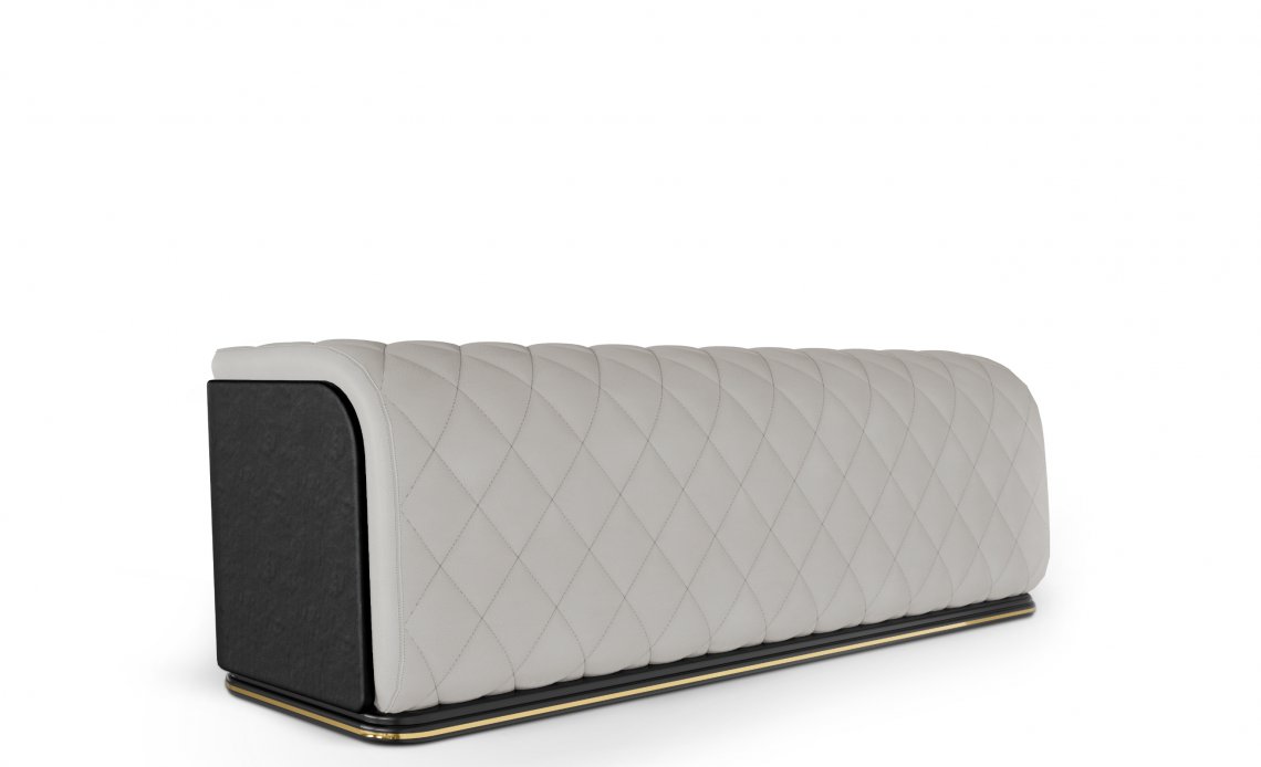 The Charla Collection takes the form of a leather ottoman to complete any bedroom, living room, or hotel decor. A high-end design made with the best materials such as polished brass, black lacquer, black leather, and grey synthetic leather. Timeless with a modern twist, the Charla Ottoman embraces the boundless elegance of its iconic collection.