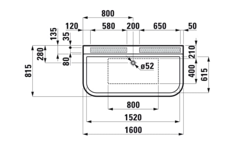 DIMENSIONS:1600 x 815 x 535 mm (length, width, height)