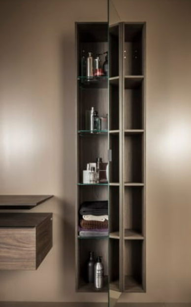 Tall cabinet 'slim' with open front, 4 shelves